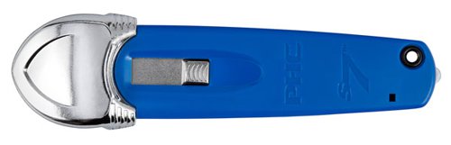 The S7 Safety Cutter combines the utility of an industrial knife with the safety benefits of a self-retracting safety cutterTo maximize productivity this 3-in-1 tool incorporates an easy release film cutter, heavy duty tape splitter and versatile safety box cutterThe guard covers the blade during top cutting to protect the user and the unique angle of the blade is set specifically to avoid damaging the contents within the boxThe spring-back blade can also be extended without the guard when needed and has three locking blade depth positions; top cut, shallow tray cut and deep cutThe integrated film cutter is perfect for safely cutting shrink-wrap, plastic straps, twine and moreUsers also find that utilizing the heavy duty tape splitter while opening boxes further prevents injuries and extends the life of the bladesFeatures:* Spring back self-retracting safety blade* Guard protection mechanism* Right or left handed, ergonomically designed handle* Blade and guard move in tandem and cannot be over-ridden* Integrated film cutter for improved productivity and efficiency* Easy blade change reduces costly razor blade injuries and makes box cutting safe, easy and comfortable* Blunt safety tip prevents puncture wounds* Can be used with UKH-545, CL-36 and SP-017
